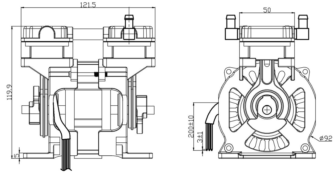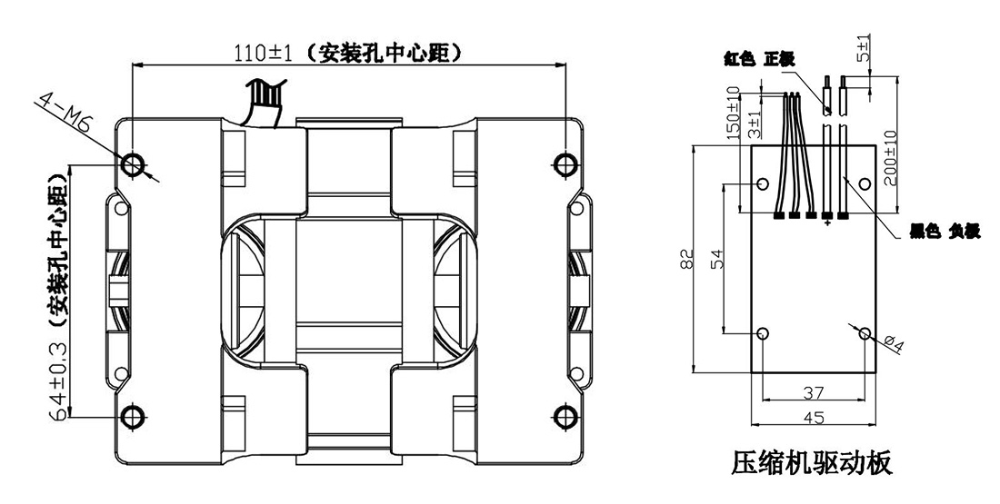 距离压缩机1米处测试,环境噪音≤32dB(进出气口用PVC管或铜管引出到噪音房外) |
