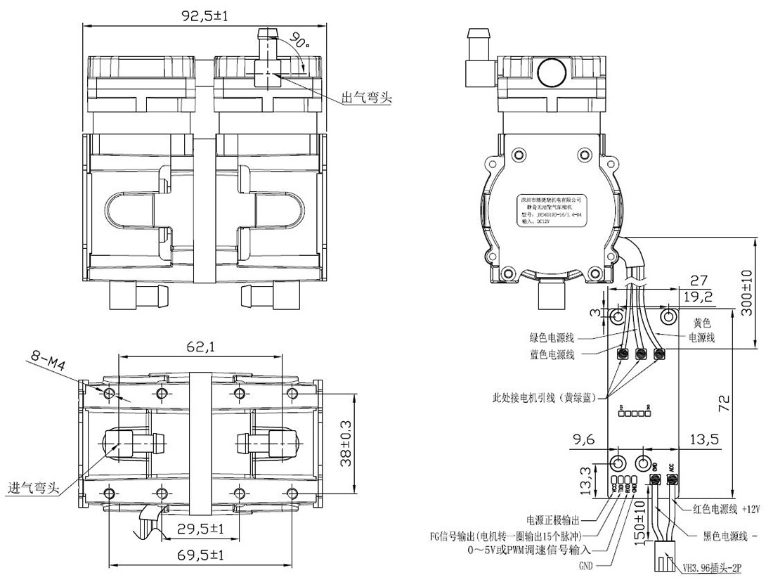 距离压缩机1米处测试,环境噪音≤32dB(进出气口用PVC管或铜管引出到噪音房外) |